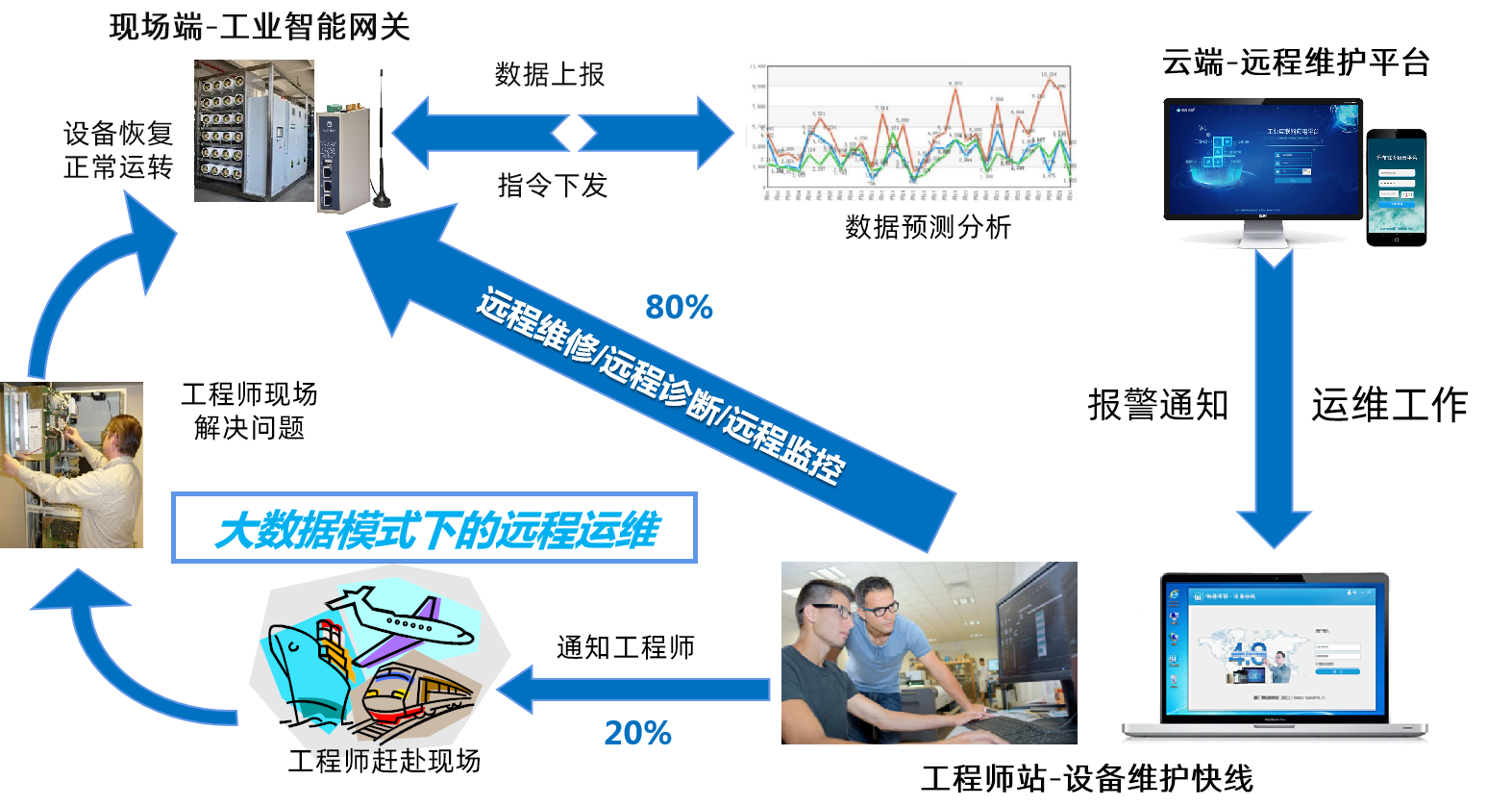 威九国际设备远程维护系统由现场端的工业智能网关、工程师站的设备维护快线、云端的设备远程运营管理平台三部分组成,构建了一条通往远端工业现场的远程维护的安全数据通道,实现工程师对设备远程维护、诊断、调试和远程上下载程序,极大降低工程师出差成本,提高工程师的工作效率,实现了预防式远程维护及管理。