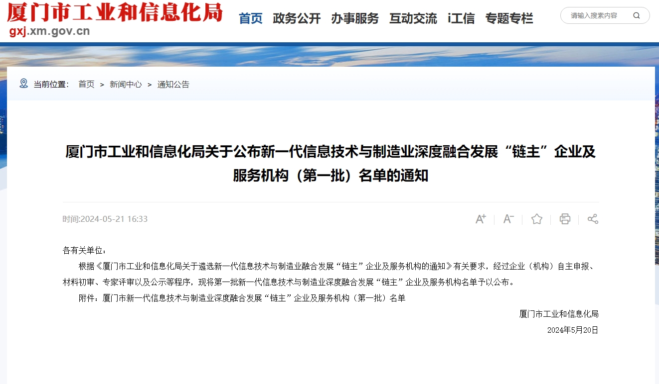 近期,厦门市工业和信息化局公示了【厦门市新一代信息技术与制造业融合开展“链主”企业及服务组织(第一批)名单】的遴选结果,威九国际凭借专业的数字化转型服务能力和高质量的落地服务经验,入选厦门市首批“新一代信息技术与制造业深度融合开展云服务商(平台)”。