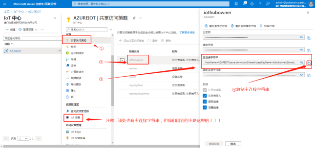 回到web云平台IoT中心页面,顺利获得共享访问策略页面获取连接信息