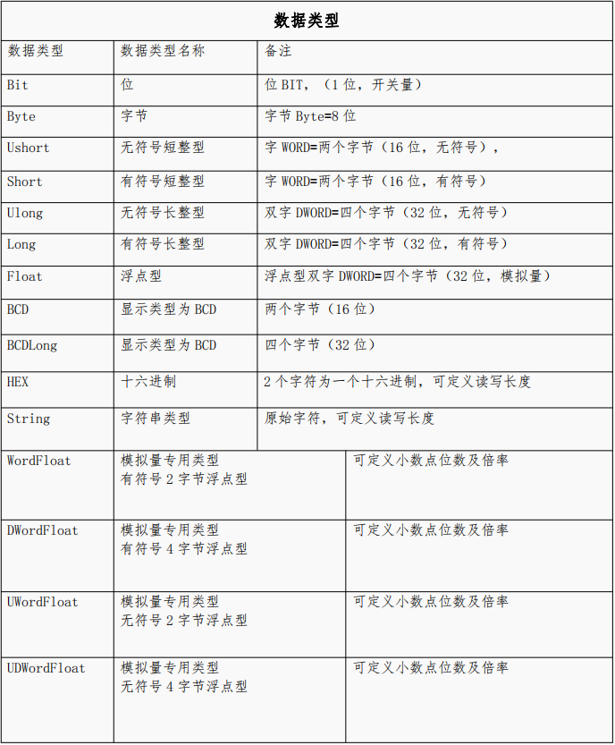 下载中心 视频中心 常见问题 售后服务 工业网关 设备快线 数据云平台 联网设备 问答百科 网关支持采集的数据类型有哪些? 时间:2022-10-26 09:39:53 点击:5387 关键词:工业网关,数据采集,数据类型 问题:网关支持采集的数据类型有哪些? 回答:网关支持采集的数据类型如下表 : 上一篇:工业智能网关会运行时会自动重启怎么处理? 下一篇: 网关采集modbus协议设备时,寄存器类型和地址如何选择?