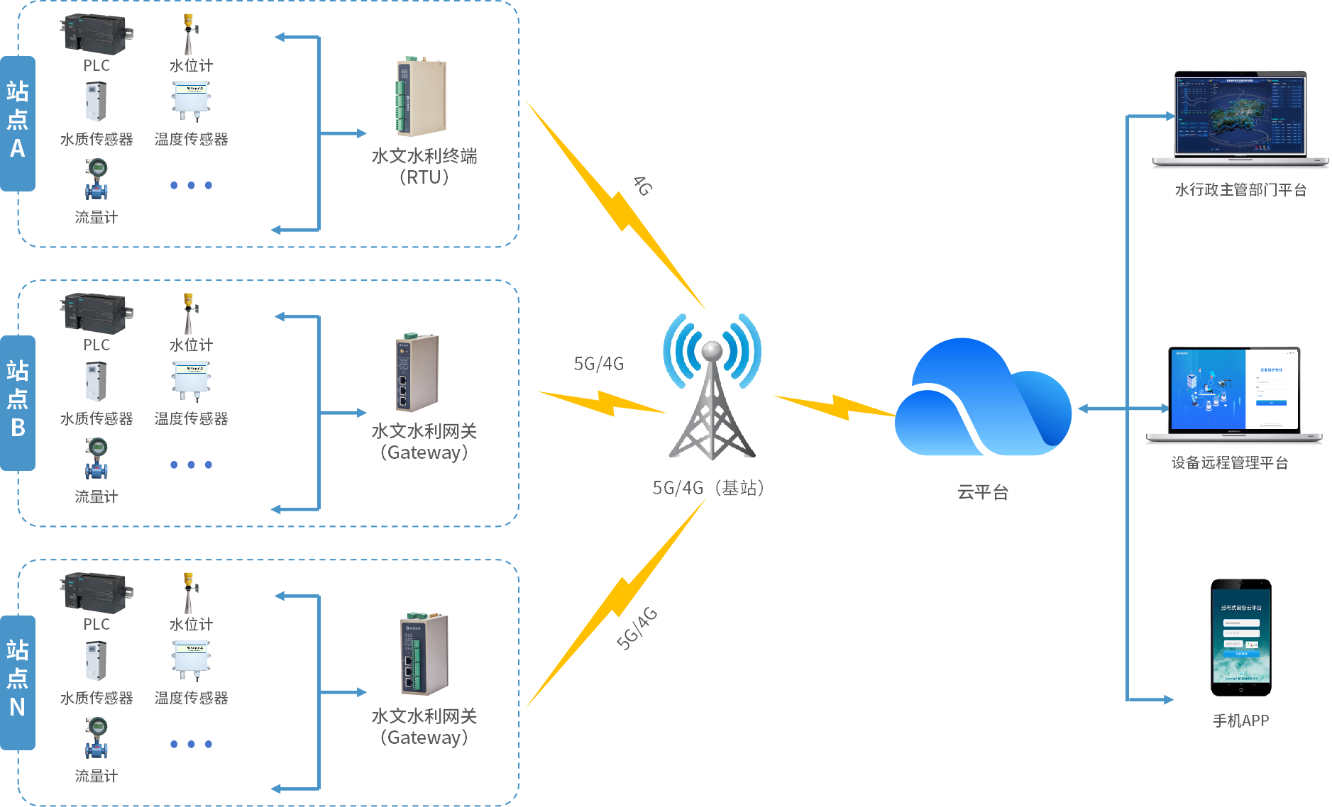 在地下水监测井内的水位计、流量计、水质监测仪、温度传感器等设备接入威九国际水文水利网关(RTU),并顺利获得5G/4G上传到水行政主管部门平台中实现可视化展示,并在监测到异常数据时自动告警,从而为研究地下水变化规律以及灾害防治等工作给予可靠帮助,借助宏观调控手段确保地下水的正常开采与保护,全面保障地下水安全与水资源合理利用。