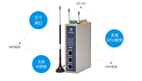 具有三个千兆网口、2个串口,支持5G、4G、PPPoE、Wi-Fi网络、数字IO输入输出、串口终端通信、为不同的应用场合给予不同的解决方案