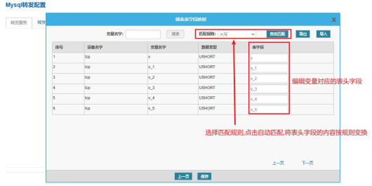 点击“配置转发变量点表”,也进入历史横表字段配置
