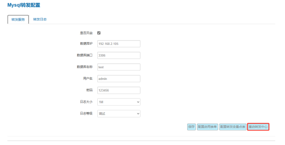 4、配置完成后,点击“重启转发中心”,使配置生效