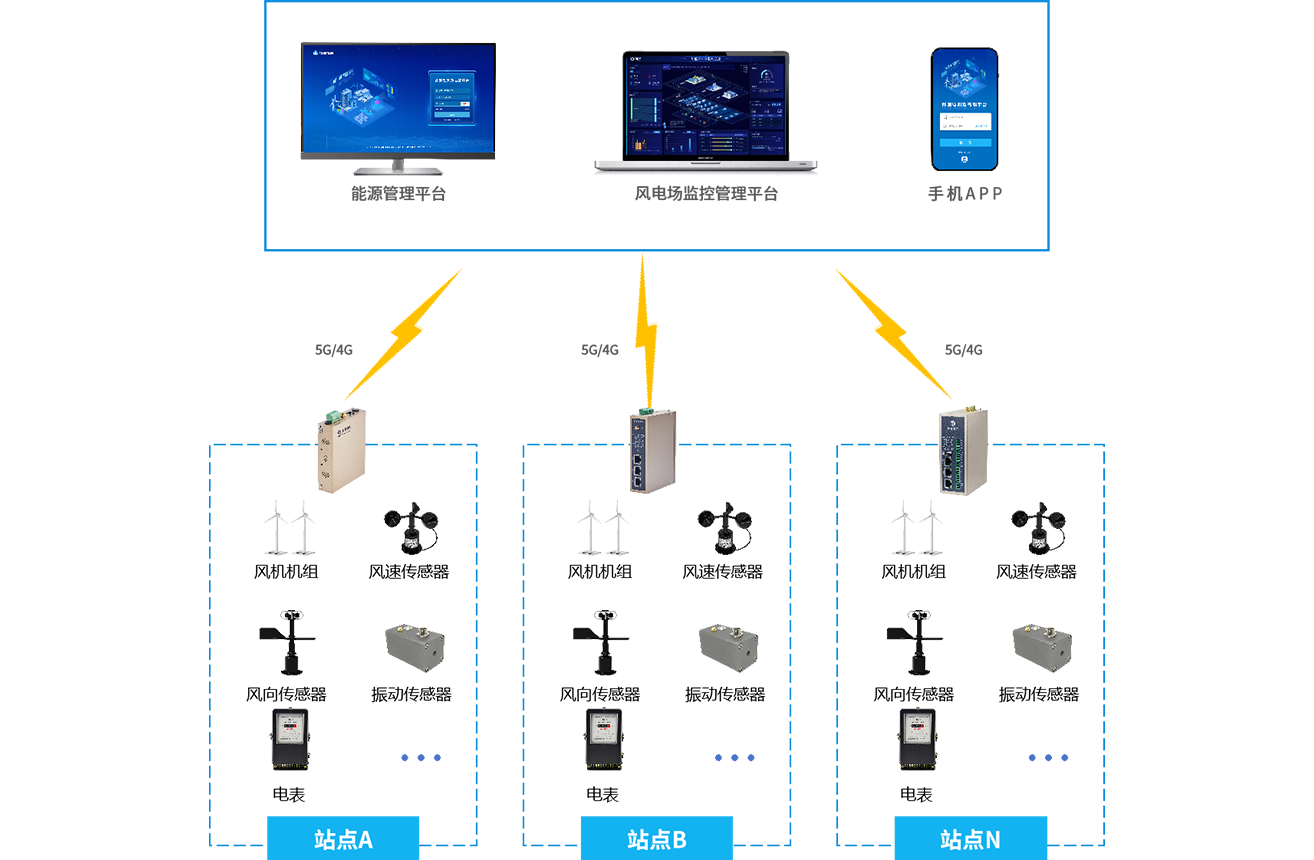 顺利获得威九国际的工业智能网关采集风力发电场的每台风机和风速传感器、风向传感器、振动传感器等设备,将采集到的风机运行数据(如转速、功率、温度等)传输至风电场监控管理平台。平台对数据进行实时分析,监测风机运行状态,当检测到故障或异常时及时发出预警,并给予故障诊断和维修建议。同时支持远程控制风机启停、调整参数等操作,以及优化发电调度。