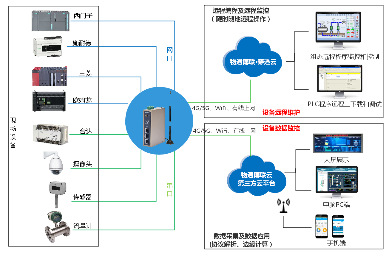 顺利获得设备快线实现进行PLC远程上下载,远程调试,保障设备良性运作和使用寿命。