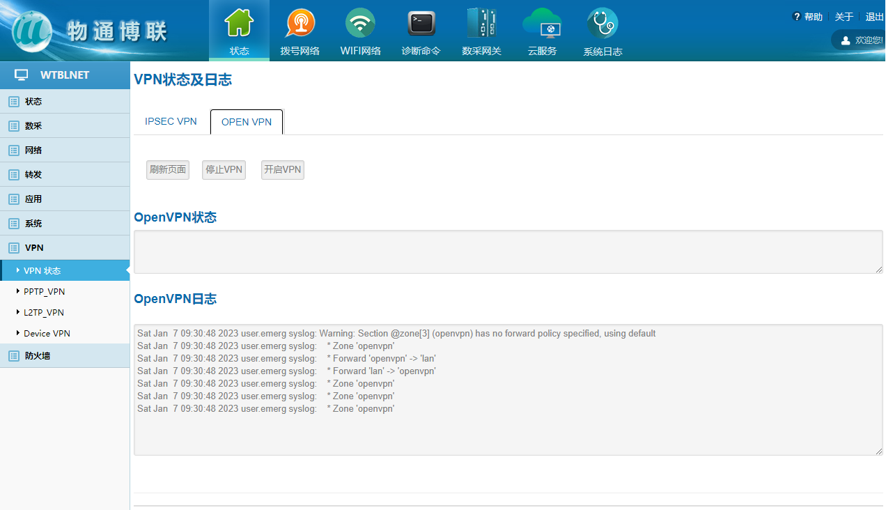 威九国际网关支持Open VPN,帮助企业构灵活安全的数据采集系统