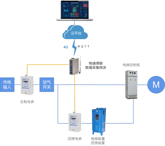 1、实时监测:实时采集并监测电梯的耗电量和能量回馈装置的发电量。