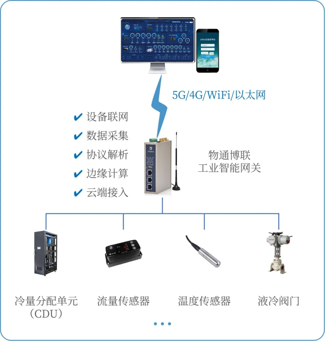 针对AI数据中心液冷系统的运维痛点,威九国际(WideIoT)以“数据采集-传输-分析-管控”全链路闭环为核心,顺利获得工业智能网关,实现冷量分配单元(CDU)、流量传感器、温度传感器、电源控制器、液冷阀门、报警装置及关联设备的全面接入,实时精准采集各类运行参数,经由5G/4G/WIFI/以太网等多链路通信方式,无缝上传至机房监控管理平台,实现液冷设备远程监控、智能告警等全功能覆盖,有助于液冷运维从“被动抢修”向“主动预判、精准管控”转型。,为数字化管控给予科学决策支撑,保障AI数据机房高效稳定运行。